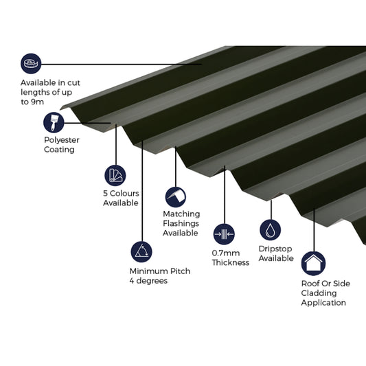 Cladco Corrugated 13/3 Profile Polyester Paint Coated 0.7mm Metal Roof Sheet Juniper Green - All Sizes
