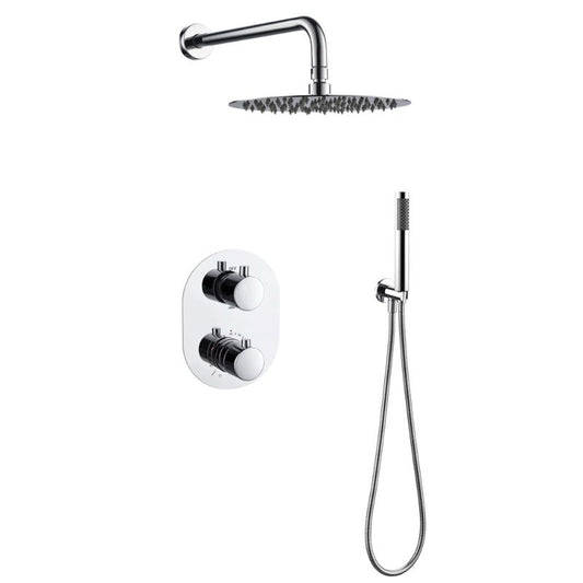RAK Ceramics Compact Round Exposed Thermostatic Shower Column with Fixed head and Shower Kit in Chrome