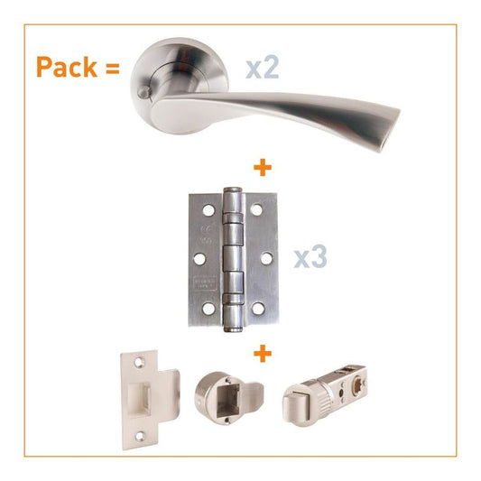 JB Kind Blade Satin Chrome Privacy Door Handle Latch Pack
