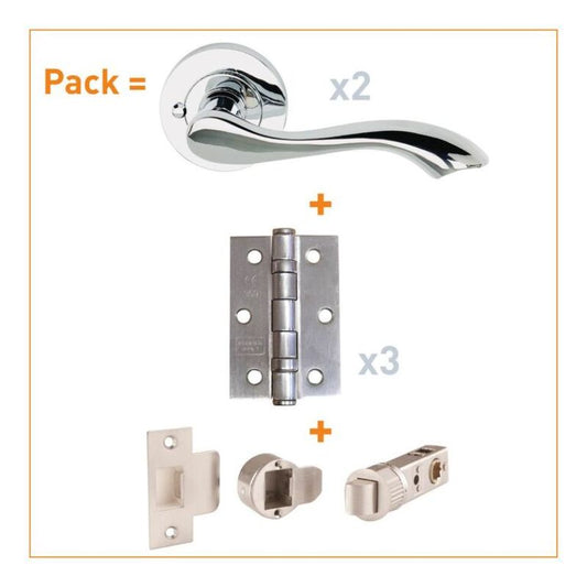 JB Kind Wave Polished Chrome Privacy Door Handle Latch Pack