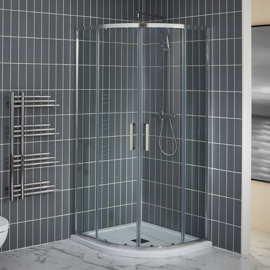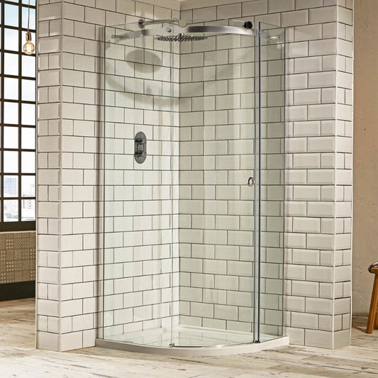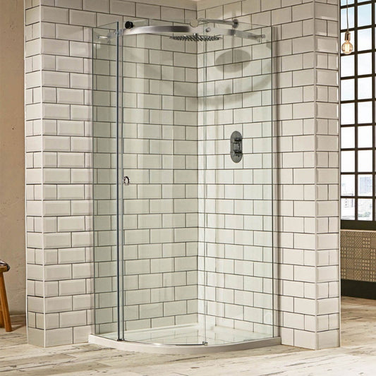 Aquaglass Purity Curved Offset Quadrant Shower Enclosure w/ 1 Elongated Side Panel & 2 Sliding Doors - All Sizes