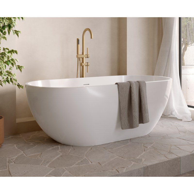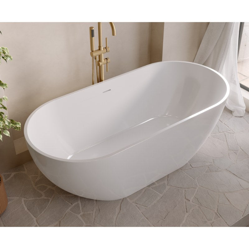 Aqua Fira Stone Freestanding Bath Gloss White (No Tap Hole) - All Sizes
