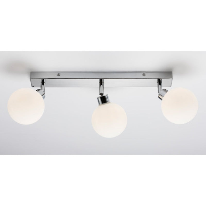The contemporary polished chrome fitting of this 3 light spotlight will suit any modern bathroom setting. With 3 adjustable spotlights set on a central rectangular ceiling bar this light will brighten all corners of your room and provide a stylish finishing touch with frosted bulbs.