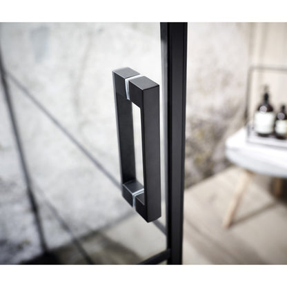Create a stylish shower and save space with this corner entry enclosure from our Velar range. It's ideal if you want a square shower cubicle that fits in bathroom corners, or if you're looking for a decorative enclosure that adds personality to your space. The black metal frame features stunning metal lines inspired by Victorian window frames - bringing a dazzling window effect to your bathroom. You'll also find that the horizontal and vertical lines lengthen and widen your space - making it even more perfect for small interiors.