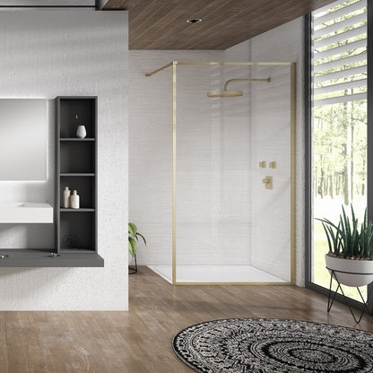 Aquaglass Velar+ Walk-in Panel w/ Stabilising Bar (Brushed Brass Clear Glass) - All Sizes