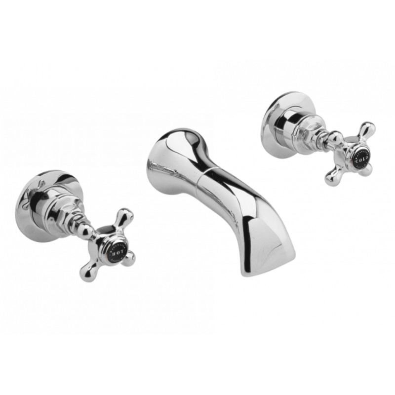 Bayswater 3 Tap Holes Wall Mounted Basin Mixer Chrome Crosshead - All Colours