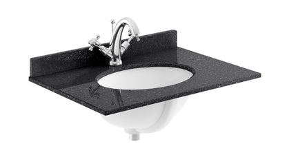 This stunning black marble top contrasts beautifully with the classic white china basin. Luxuriously deep basin provides ample bathing space with room at the side for all your favourite toiletries. Pair with one of our traditional cabinets in a range of unique colours.