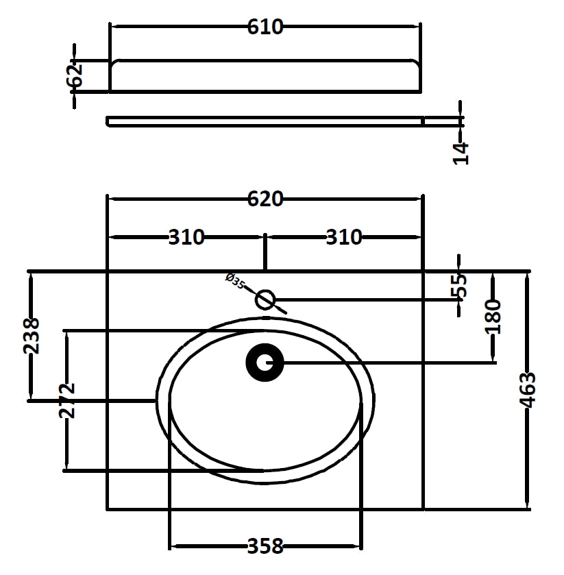 Bayswater Black 600mm 1 Tap Hole Single Bowl