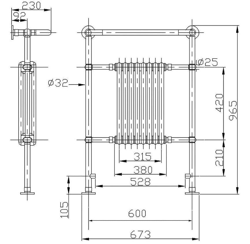 Bayswater Clifford Towel Rail/Radiator 965mm x 673mm x 230mm
