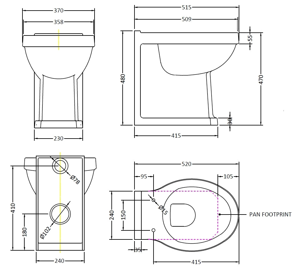 Bring an early Edwardian sensibility to your bathroom with this traditional back to wall pan. Suitable for use with back-to-wall furniture units. Comfort height pans are a practical option for the taller person or those who have mobility concerns. Manufactured from high quality vitreous china.