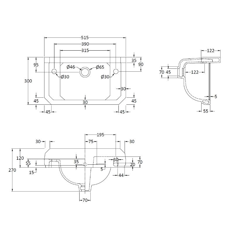 The Bayswater BAYC019 Fitzroy Comfort Height Pan measures 466mm in height, 370mm in width, and 515mm in depth.