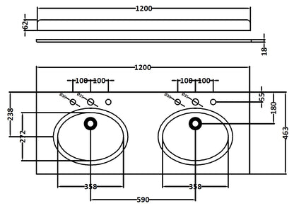 Bayswater White 1200mm Double Bowl 3 Tap Hole