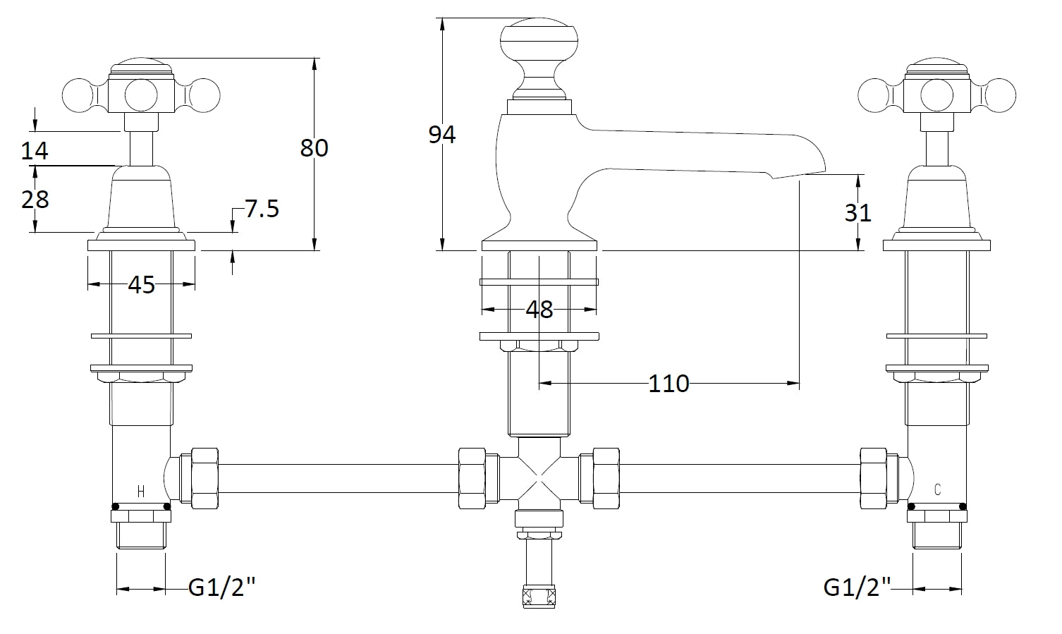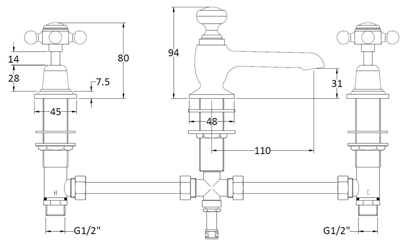 Bayswater White Deck Mounted Basin Mixer