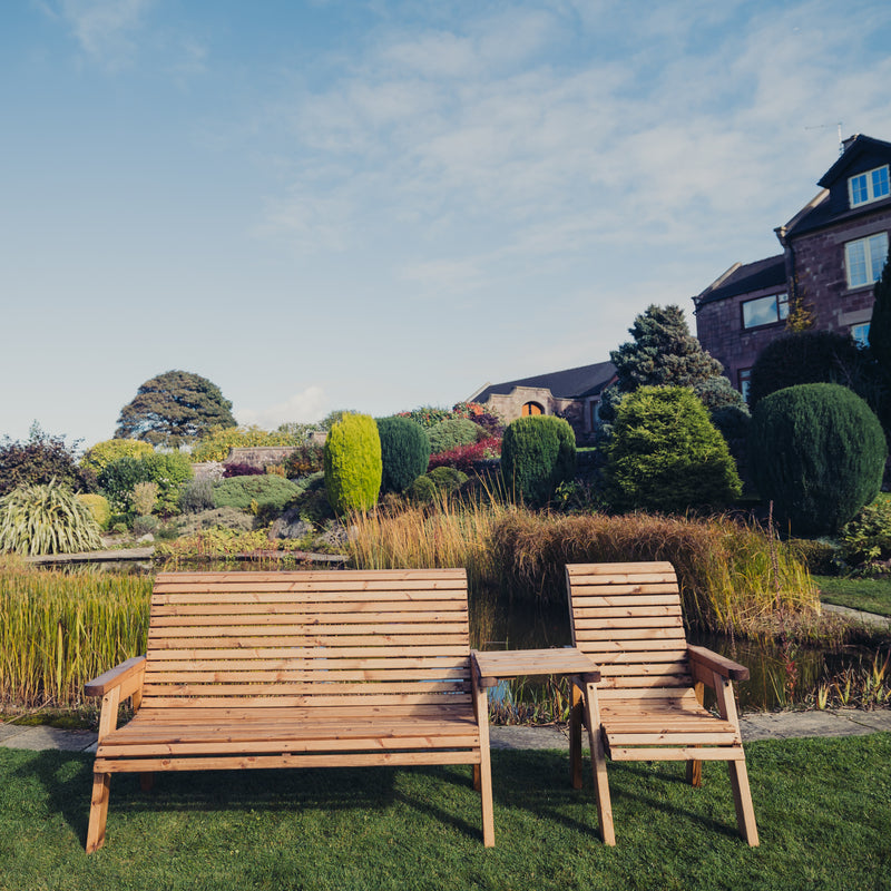 The Churnet Valley 4 Seat Set is designed to comfortably seat four people, including one chair and a three-seat bench.