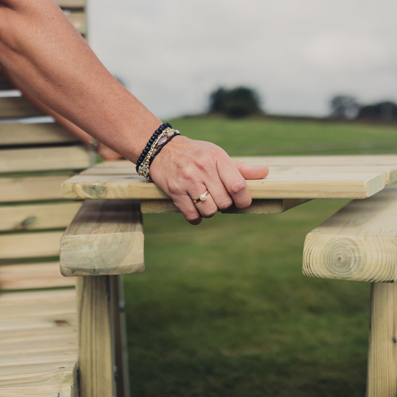 Crafted from FSC approved, premium quality pressure-treated timber, the Churnet Valley Angled Tray is built to last. The timber is tanalised, a process that infuses the wood with preservatives to prevent rot and decay for up to 20 years, ensuring your tray remains in excellent condition despite the elements. Handmade in the UK, this tray showcases superior craftsmanship and attention to detail, making it a reliable and attractive addition to your garden furniture.