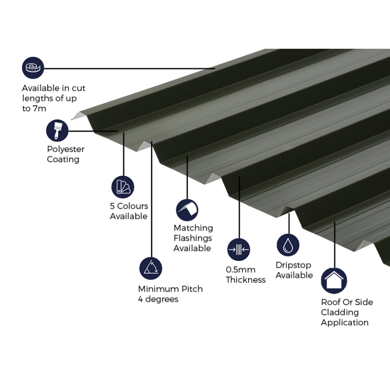 Cladco 32/1000 Box Profile Polyester Paint Coated 0.5mm Metal Roof Sheet Juniper Green - All Sizes