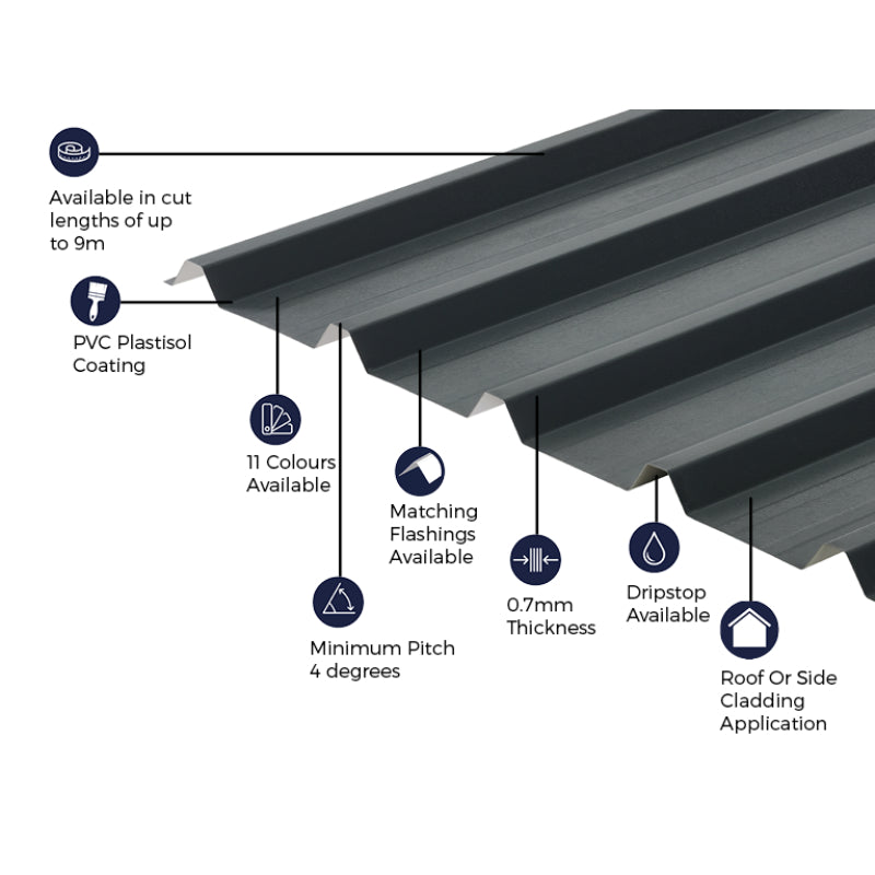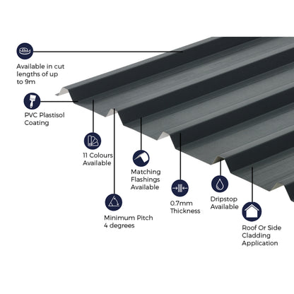Cladco 32/1000 Box Profile PVC Plastisol Coated 0.7mm Metal Roof Sheet Anthracite - All Sizes