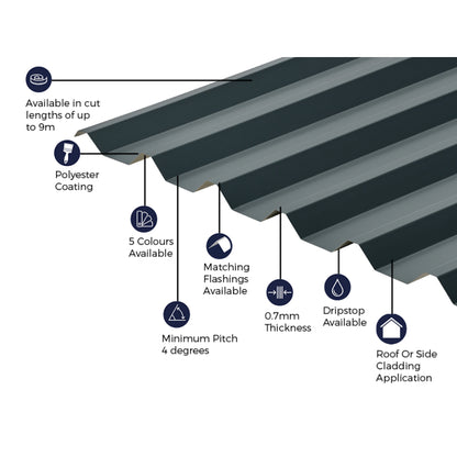 Cladco 34/1000 Box Profile Polyester Paint Coated 0.7mm Metal Roof Sheet Slate Blue - All Sizes