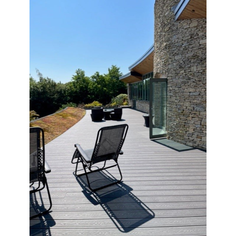 Robust Material: Constructed from high-quality composite materials, this decking board offers the classic look of timber without the extensive maintenance. It's designed to withstand the elements and resist fading, ensuring a long-lasting, vibrant finish.