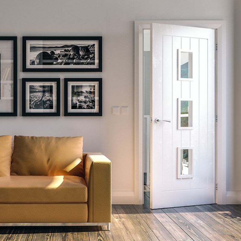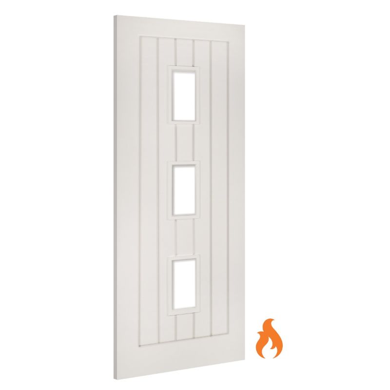 Deanta Ely Internal Fire Door White Primed Glazed - 78in x 27in (1981 x 686mm)