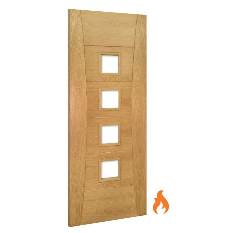 Deanta Pamplona Oak Internal Fire Door Glazed Prefinished - 78in x 27in (1981 x 686mm)