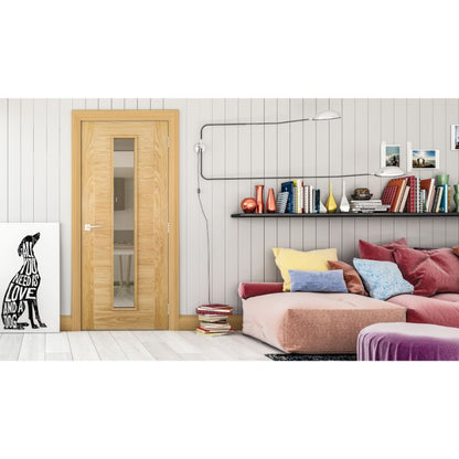 Deanta Seville Oak Internal Fire Door Glazed Prefinished - 78in x 30in (1981 x 762mm)