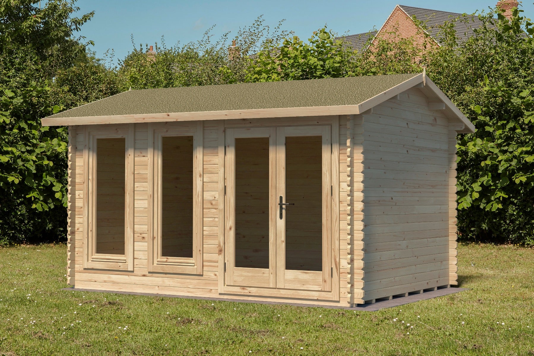Forest Chiltern Log Cabin Apex Roof, Single Glazed 24kg Felt, plus Underlay - 4.0m x 3.0m