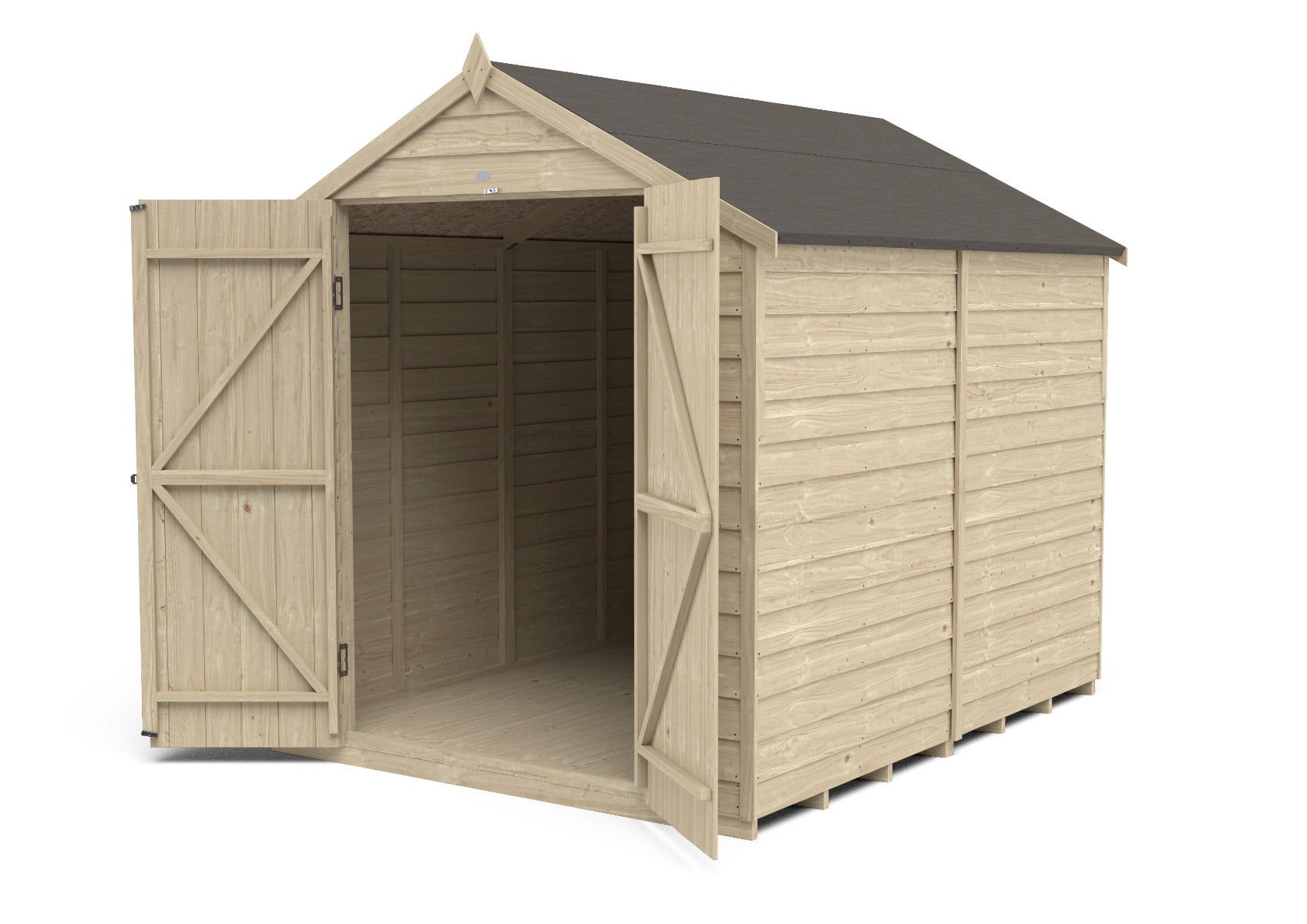 4LIFE Overlap Pressure Treated Apex Garden Shed - Double Door - 8 x 6ft