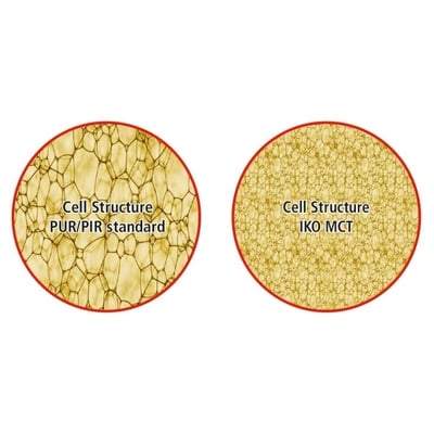 IKO enertherm ALU is a 100 % CFC, HCFC or HFC-free insulation board with a rigid polyisocyanurate foam core, clad on both sides with a multi-layer gastight aluminium complex. This high-quality reflecting ALU cladding consists of no fewer than seven layers, combined into a single complex. It is tested under extreme conditions in respect of water absorption, mechanical properties, corrosion resistance and emissivity.