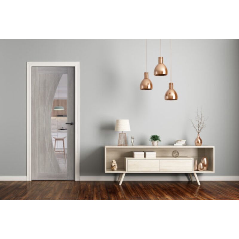 While this door is not fire-rated, it boasts a robust construction that promises durability and longevity, backed by a reassuring warranty for peace of mind. The inclusion of glazing not only enhances the door's aesthetic appeal but also contributes to a brighter, more open living space. Whether you're renovating or building anew, the White Grey Salerno Internal Laminate Clear Glass Door is an excellent choice for those seeking style, quality, and practicality.