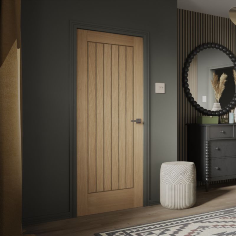 The door is crafted from high-quality oak, ensuring durability and a touch of elegance in any interior space.