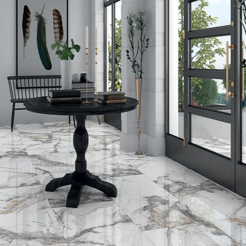This striking marble effect glazed porcelain range is available in 600mm x 300mm rectified with gloss or satin finishes.