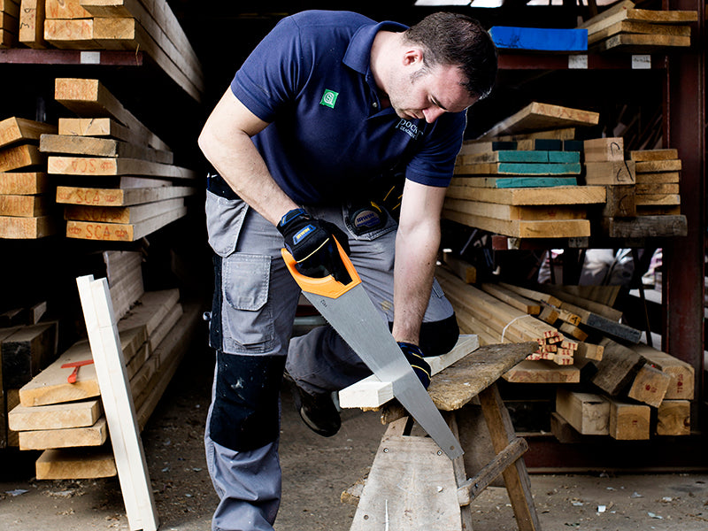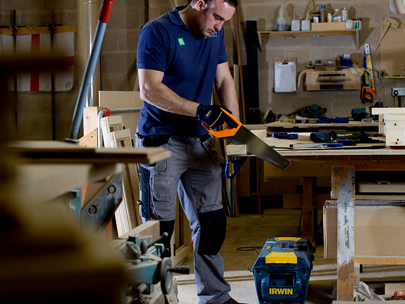 The IRWIN Jack Jack Universal 880 Triple Ground Hardpoint Saw is fitted with a high-quality C75 steel blade and features a unique Triple Ground tooth design offering up to 25% faster cutting performance than traditional double ground saws. The blade is treated with a water based lacquer providing four times the added protection than conventional anti-rust agents.
