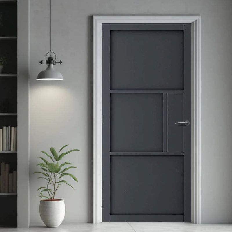 This engineered core, modern slim line style internal door with recessed dark grey panels comes fully finished in factory-grade laminate paint finish, so it's ready to for hanging as soon as it arrives at your home. It can conveniently be fitted with regular door hardware, a clear distinction from other narrow-stile doors. It also benefits from having a 10mm trimming allowance from the bottom rail, meaning that it can fit into shorter, non-standard openings with ease.