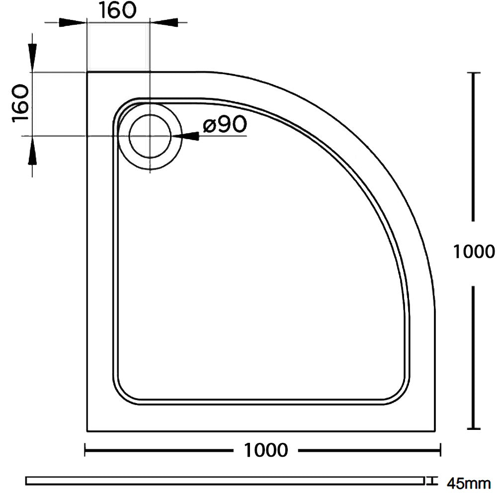 With its easy-fit design and lightweight size, this Designer Quadrant Shower Tray from Just Trays takes the headache out of fitting enclosure floors. Crafted in ABS-capped acrylic stone resin, this antibacterial tray only needs a 90mm waste for excellent water drainage.