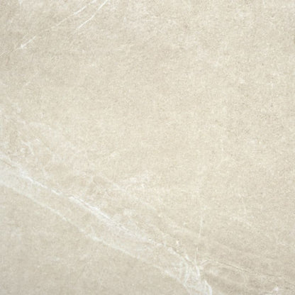 This elegant and versatile porcelain, with light veining and uniform background, is reminiscent of exclusive Portuguese limestone. It is available in three colours and a further patterned imprint option, giving the impression of a modular laying pattern.