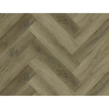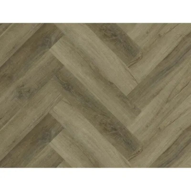 Kraus Odell Oak is a waterproof herringbone pattern LVT with integral underlay and Rigid Core Technology. A rustic brown colour with varying shades creates a high contrast look across the room. Ideal for use in most living spaces. It cuts easily with a knife and provides an easy and clean flooring solution which is also resistant to scuffs and stains.