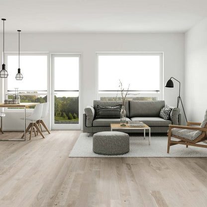The Kraus Rigid Core Luxury Vinyl Tile in Wychwood is a stylish, modern light grey tile tile with cool tones that create a bright and airy finish to any room. Featuring Tough Core Technology, this highly durable and waterproof LVT has improved resistance to scratches and stains and is also suitable for underfloor heating systems.