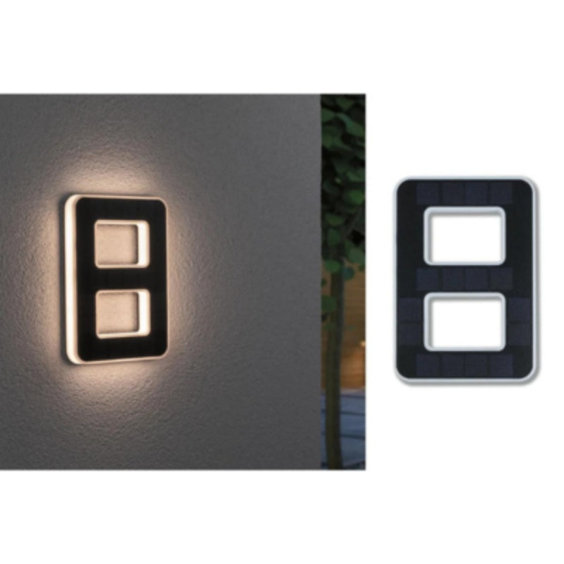 The Outdoor Solar House Number by Paulmann is a sleek, black solar-powered house number light designed to ensure your home is easily identifiable, even in the dark. It features a durable plastic construction and an energy-efficient LED light source that emits a warm 3000K glow.