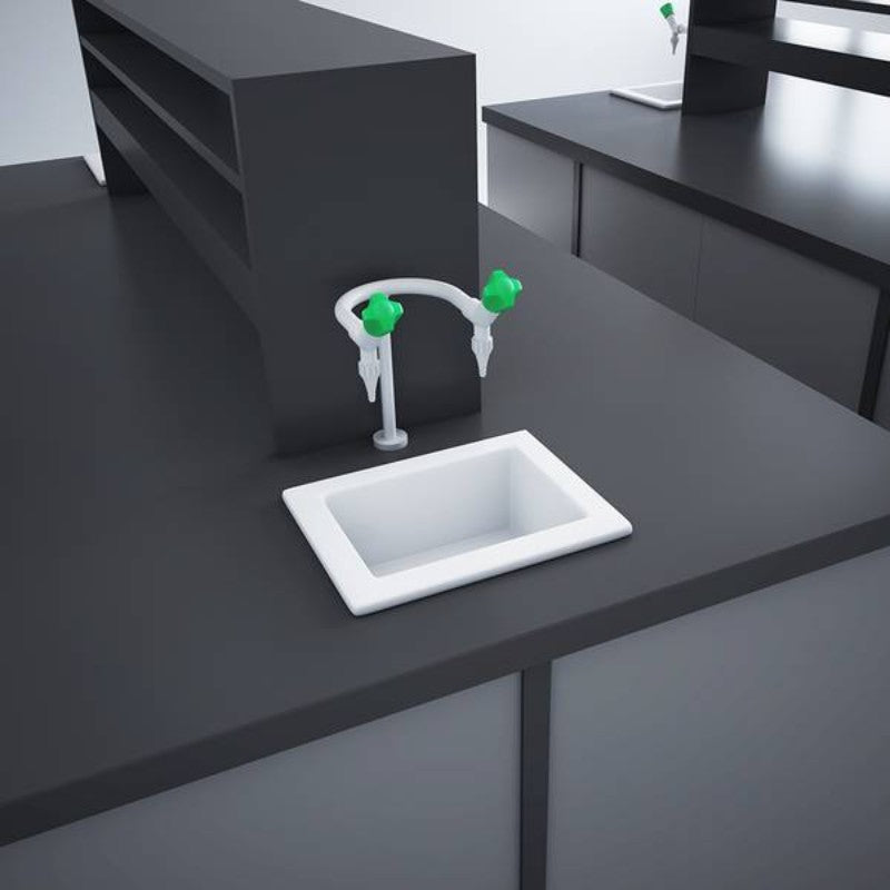 Introducing the Laboratory Sink Fireclay 380x280x152mm, a top-tier product that is designed and manufactured in the UAE. This high-quality laboratory sink is constructed from robust fireclay, ensuring durability and longevity. The sink is finished in a stunning Alpine White gloss, providing a sleek and modern aesthetic that complements any laboratory environment. The product's dimensions are 405mm in length, 185mm in height, and 335mm in width, making it an ideal fit for a variety of lab spaces.