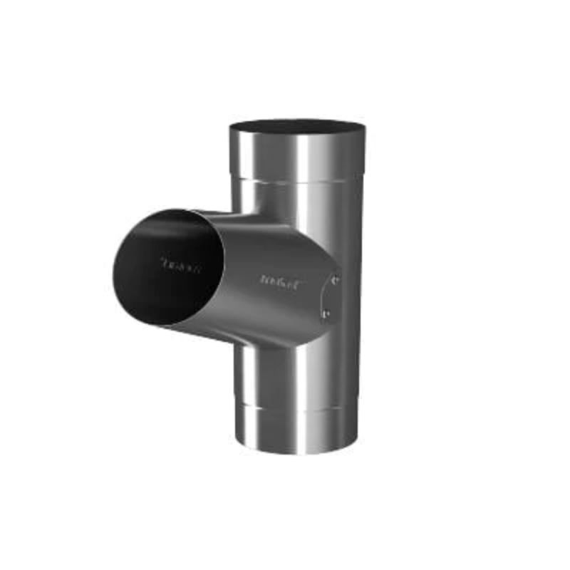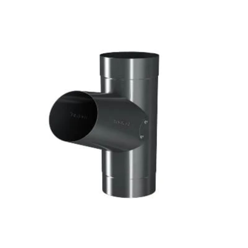 Downpipe Branch joins two water drainage pipes. Plain end on the top opening and male spigot end on the bottom to join to other lengths of pipe. The bottom end of the branch is male ended (spigoted) so fits directly into a plain end of pipe.