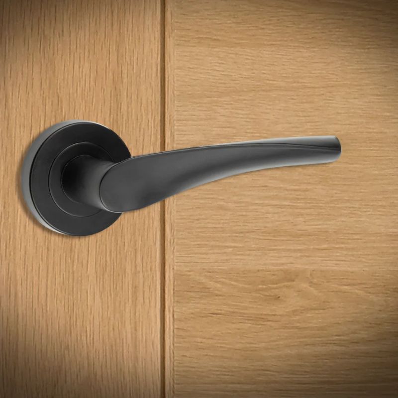 The Sesia Fire Door Handle Pack features a sleek matt black finish, which complements modern interiors with its understated elegance.