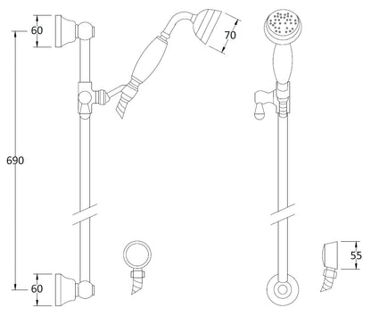 Complete your traditional bathroom with this timeless slide rail kit. Includes round handset with white ceramic detail. Outlet elbow not included.