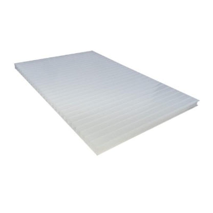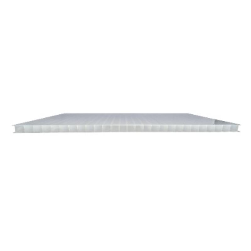 Introducing the Twinwall Polycarbonate Sheet Opal. This high-quality sheet is crafted from durable polycarbonate, a material known for its exceptional strength, lightness, and resistance to weather and UV rays. It provides excellent insulation and is perfect for a wide range of applications, from greenhouses to roofing. The opal colour adds a stylish touch, creating a pleasing aesthetic that complements any setting.