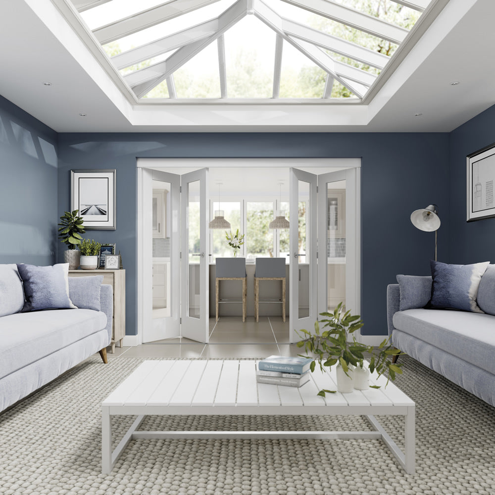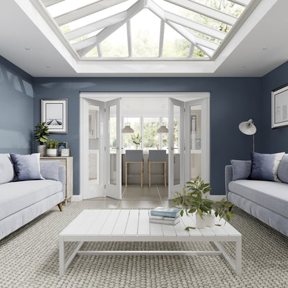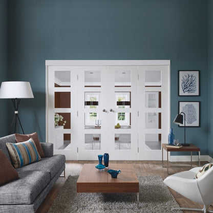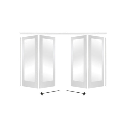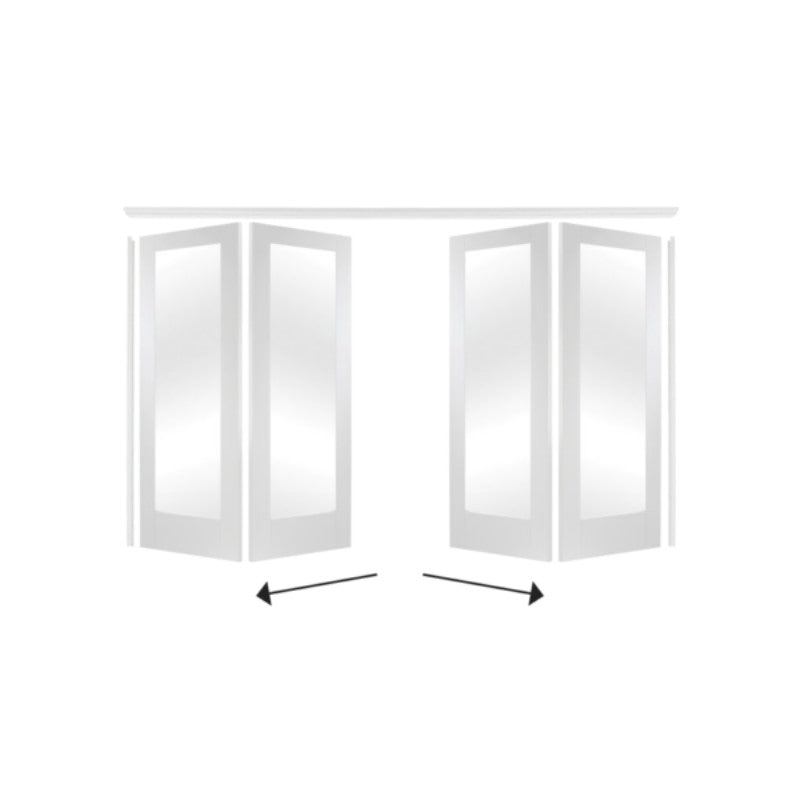 The Freefold provides the option to either fold open all doors to create one large room for entertaining or close them to create two separate living spaces. Available on any 24" white primed door. The Freefold includes a head, jambs and stops as well as a floor mounted guide and all hardware (excluding handles). The Freefold is a top hung system. System shown with Pattern 10 style doors